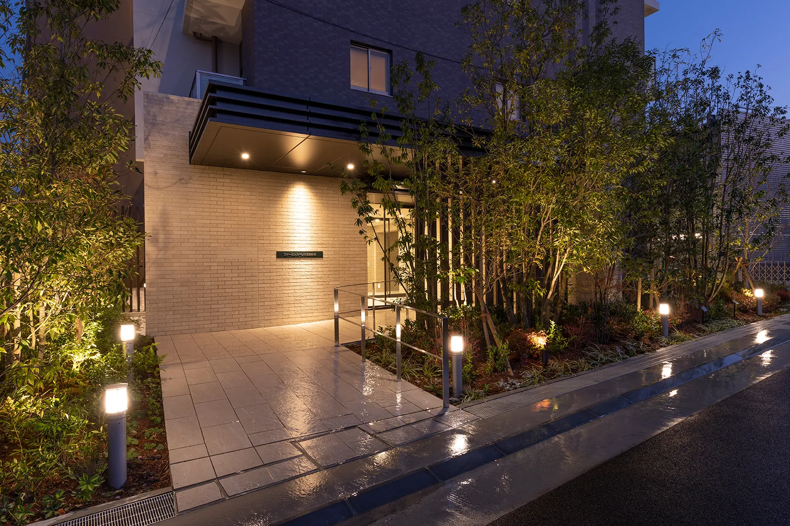 住まう方を出迎える落ち着いた設えの「竜山石」